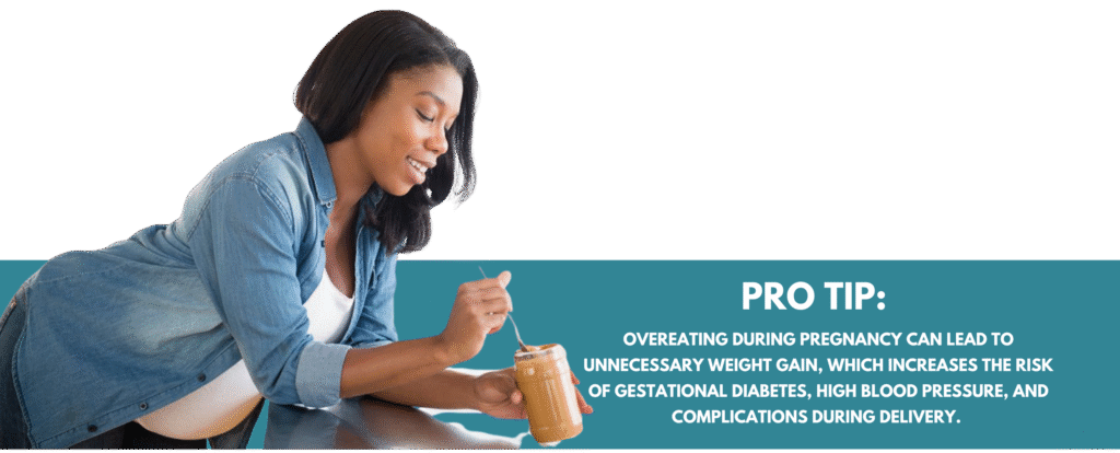 The belief is that since a woman is carrying another human being, she needs to eat double portions to sustain both herself and the baby. That’s where the phrase “eating for two” comes in. It sounds sweet, but it’s not exactly true.